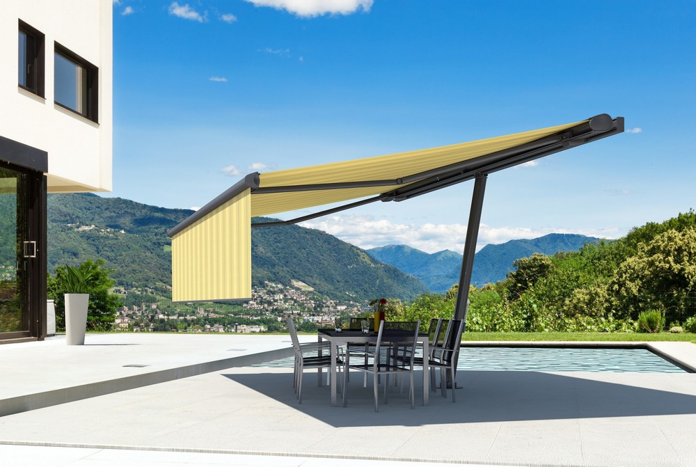 Markiza dostępna w dwóch wersjach: wolnostojąca jako markilux planet fix lub opcjonalnie obrotowa do 335° jako markilux planet flex